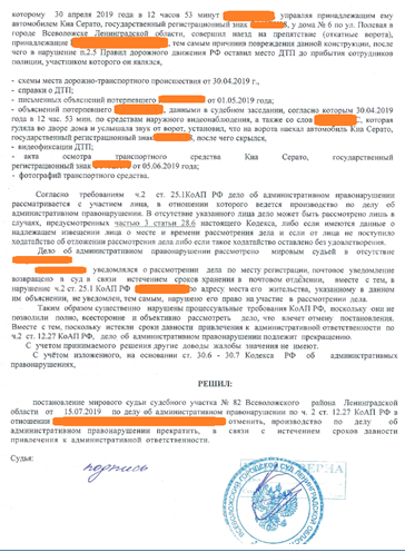 Дзержинский районный суд Санкт-Петербурга прекратил дело по жалобе адвоката Петрова С.В. за отсутствием состава правонарушения. Обращаю внимание, что в данном случае водитель тоже категорически отрицал вину.